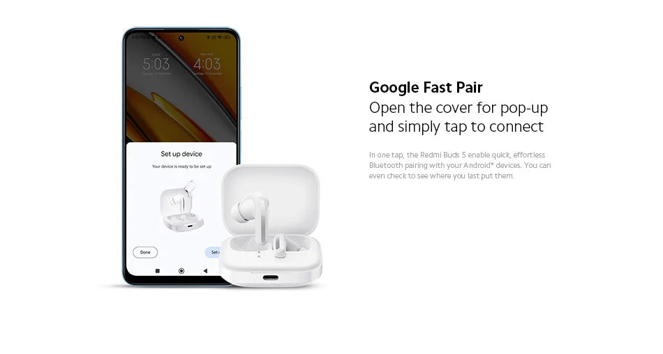 In one tap. The Redmi Buds 5 enable quick, effortless