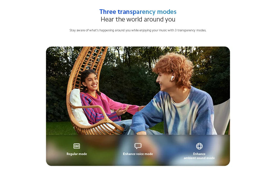 Stay aware of what's happening around you while enjoying your music with 3 transparency modes.