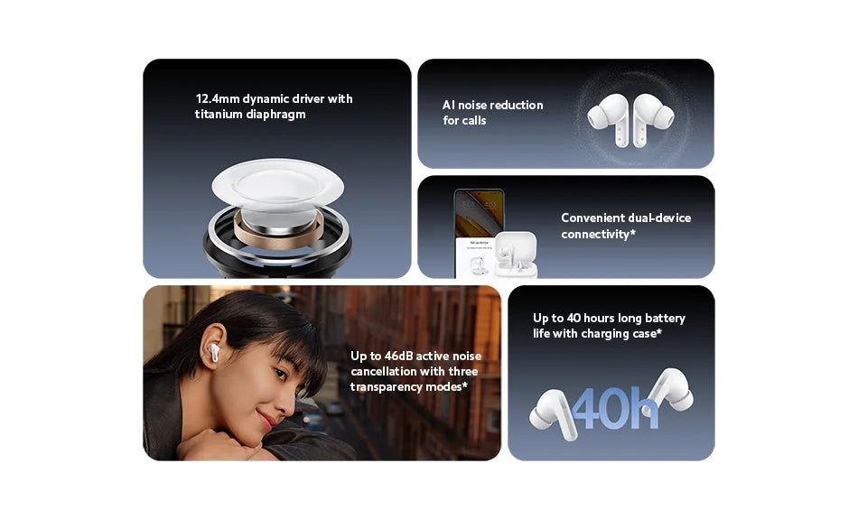 Xiaomi Redmi Buds 5 Global Version 46dB Active Noise Cancellation Up to 40 Hours Dual-device Connectivity
