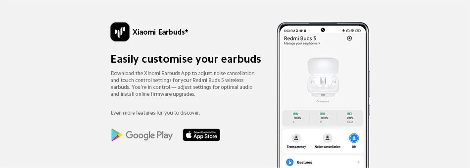 Download the Xiaomi Earbuds App to adjust noise cancellation
