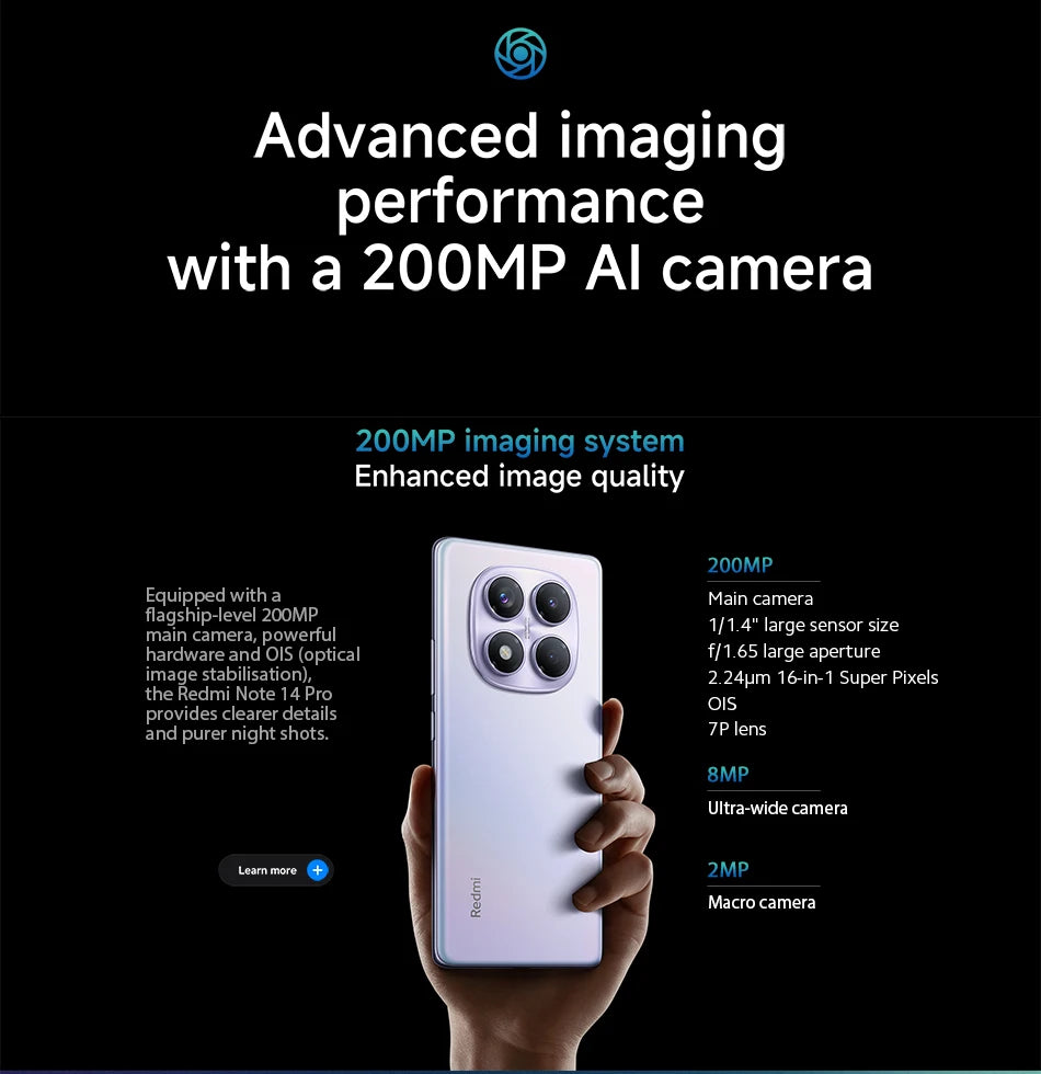 Xiaomi Redmi Note 14 Pro Global version Smartphone 200MP camera 5500mAh NFC Helio G100-Ultra 6.67" AMOLED display