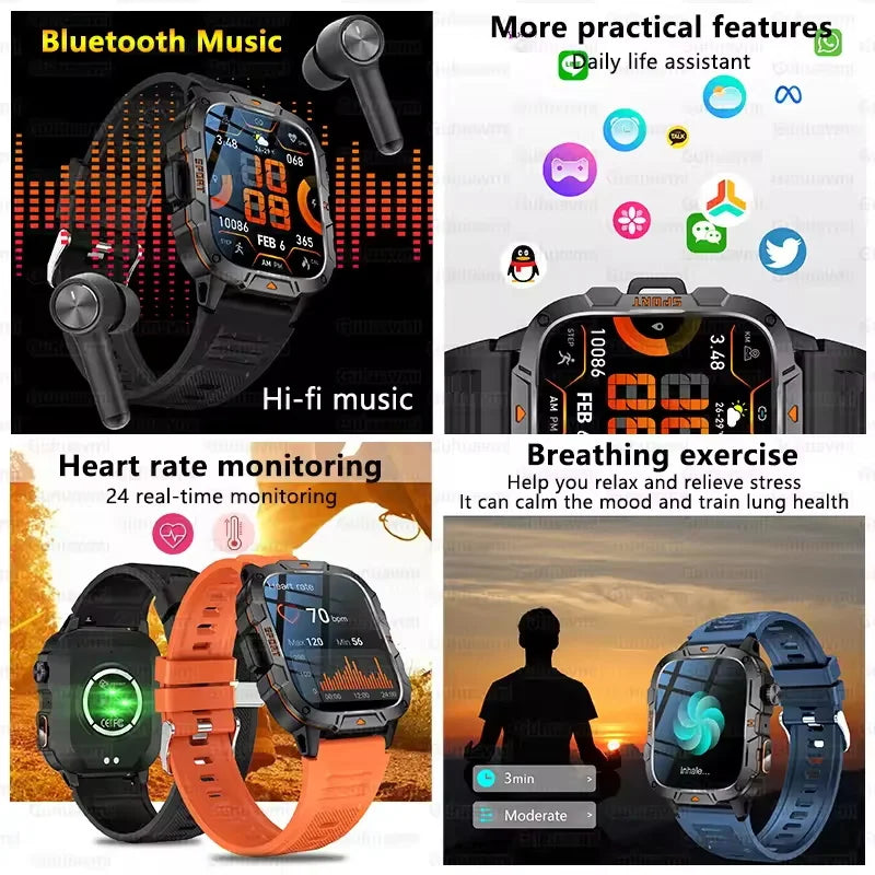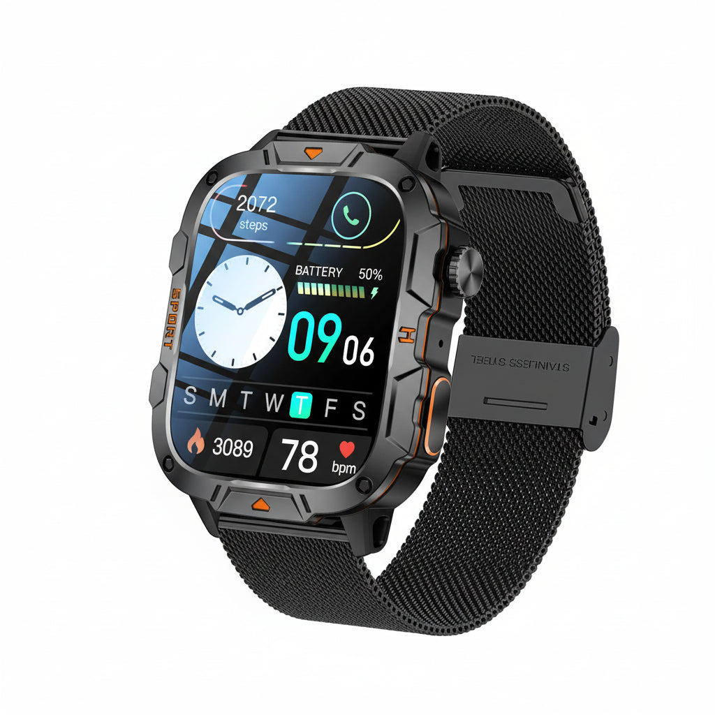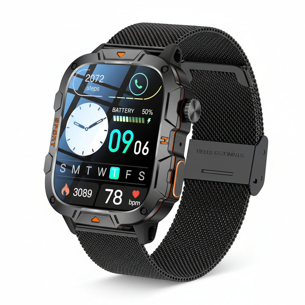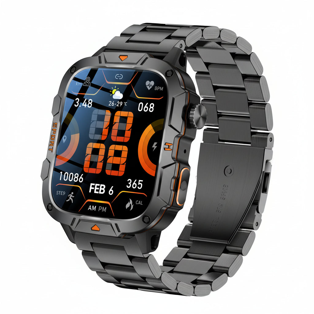 Built for strength, performance, and everyday smart living, the GUHUAVMI Military Grade Smart Watch combines rugged durability with advanced sports tracking and Bluetooth calling. Designed for outdoor use, training, and daily wear, this powerful smartwatch keeps you connected and in control wherever you go.