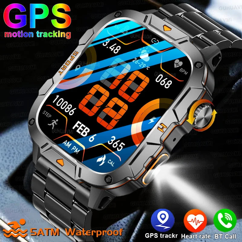 Guhuavmi Military GPS Smart Watch for Men – 5ATM Waterproof, Bluetooth Calling, Outdoor Sports Fitness